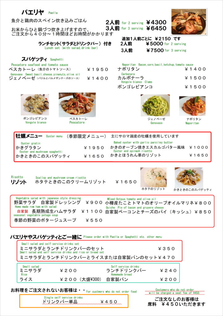 季節によりスパゲッティなどメニュー変更がございます。